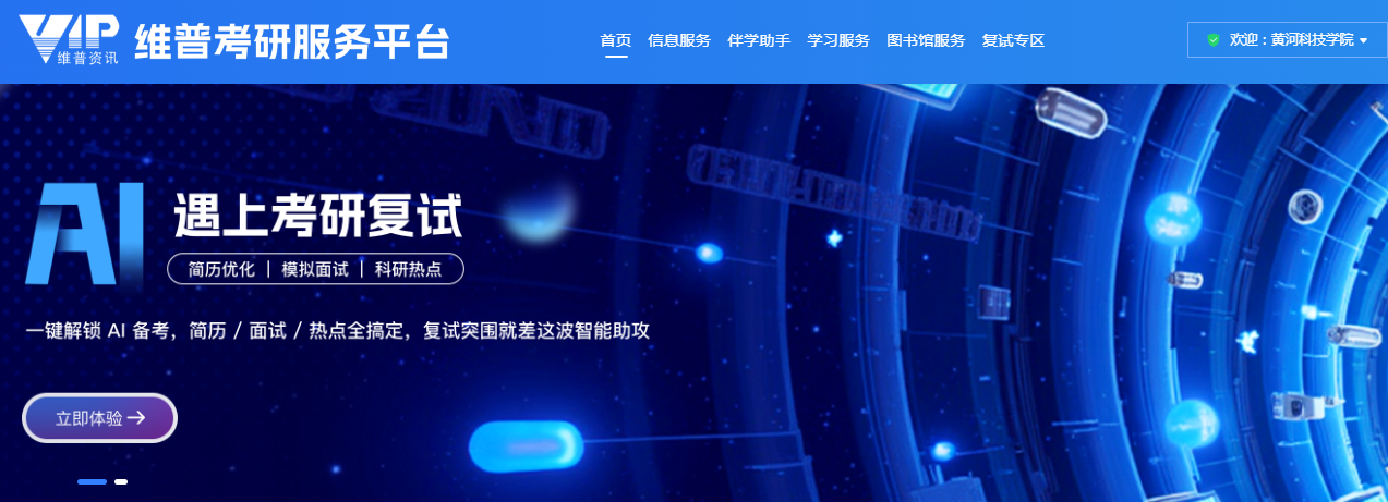 维普考研服务平台是专为beat365体育官网平台机构和考研人群打造的一站式考研服务平台。平台整合了学习服务、信息服务、AI伴学助手、复试专区、beat365体育官网平台专属支撑服务五大功能版块,满足从初试到复试的全链路需求,为考研学生构建“精准、深度、陪伴式”的一站式备考解决方案。