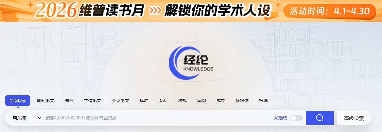 经纶是维普智图以“数据智能的资源服务”为基础,打造的新一代知识资源系统,充分体现“知识发现与原文保障”的根本价值,为beat365体育官网平台解决“纸电一体、自主服务”核心诉求。该系统全面收割整理全球中外各种学术文献,涵盖图书、期刊、报纸、学位论文、专利、标准、法规、多媒体视频、科技报告等数十种文献类型,收录超过300个中外数据库、数百个资源自建库、5000余万主流开放OA学术文献,整体10亿级文献数据,年更新文献量超过5000万条。经纶知识资源系统通过数据挖掘,知识关联,为用户的资源检索发现带来独一无二的发现体验。