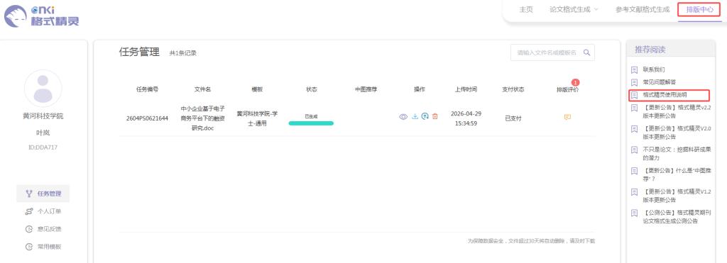 更多详细使用攻略可查看:格式精灵-排版中心-《格式精灵使用说明》(https://author.cnki.net/#/article)