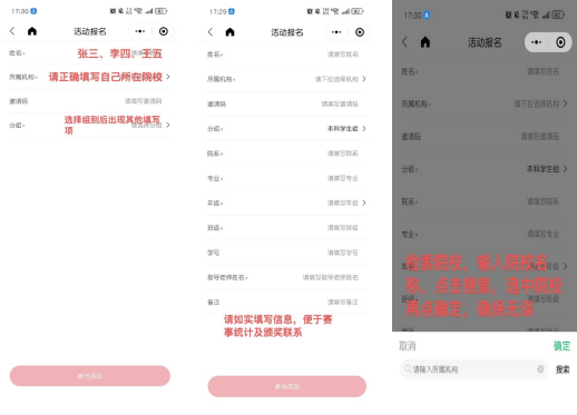 2. 按照活动界面要求,填写真实的报名信息,团队参赛的师生请将团队所有成员姓名填写完整,并用“顿号”隔开(团队人数≤5人,注:报名信息仅用于赛事统计及后续颁奖联系,请放心填写);