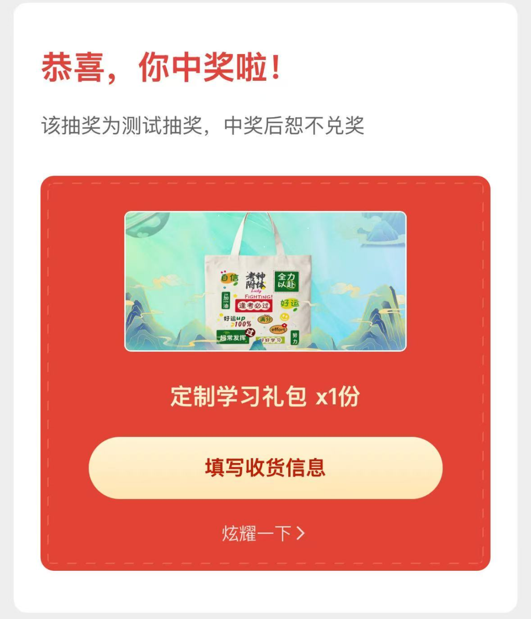 第四,中奖后填写收货信息中奖后,请一定记得填写正确的收货信息,主办方将据此发运奖品。