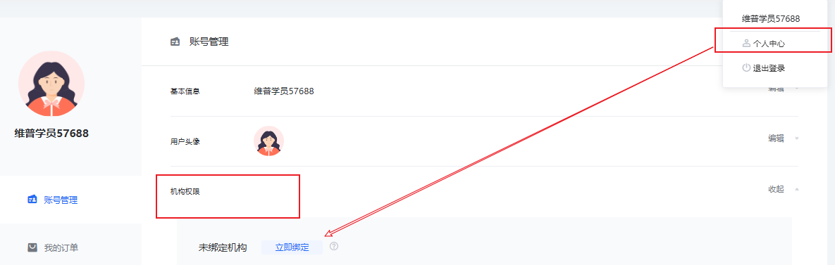 第一,机构权限绑定学校IP范围内,PC端登录或者注册账号,在个人中心绑定机构权限;